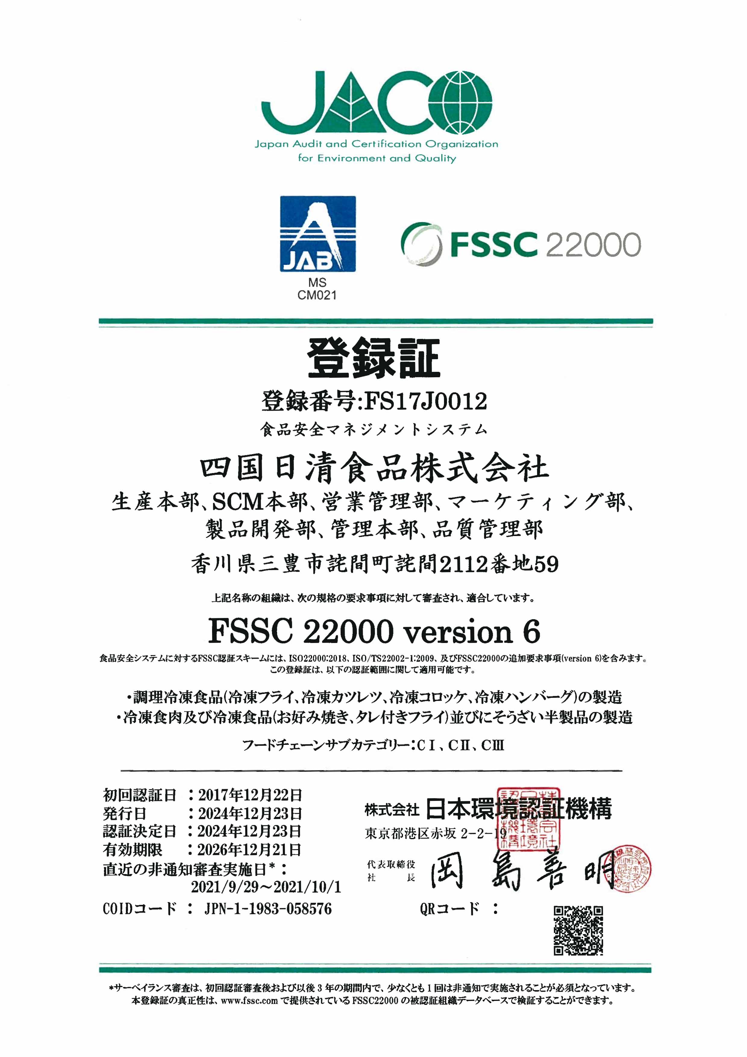 (4)私たちは、食品安全方針及び別紙、食品安全日標及び食品安全文化を四国日清食品株の全従業員並びに