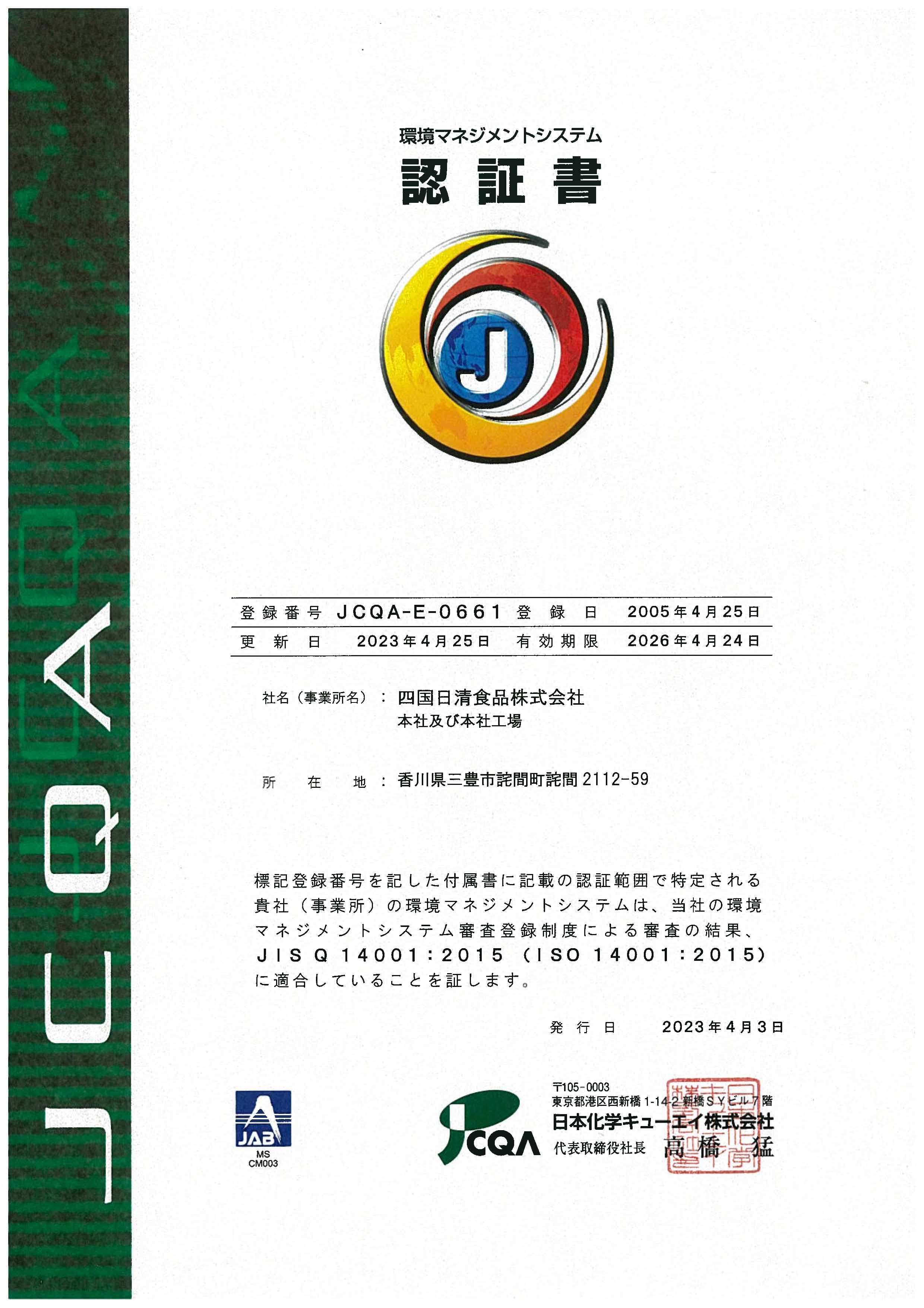 私たちは下記のマネジメントシステムを取得しております