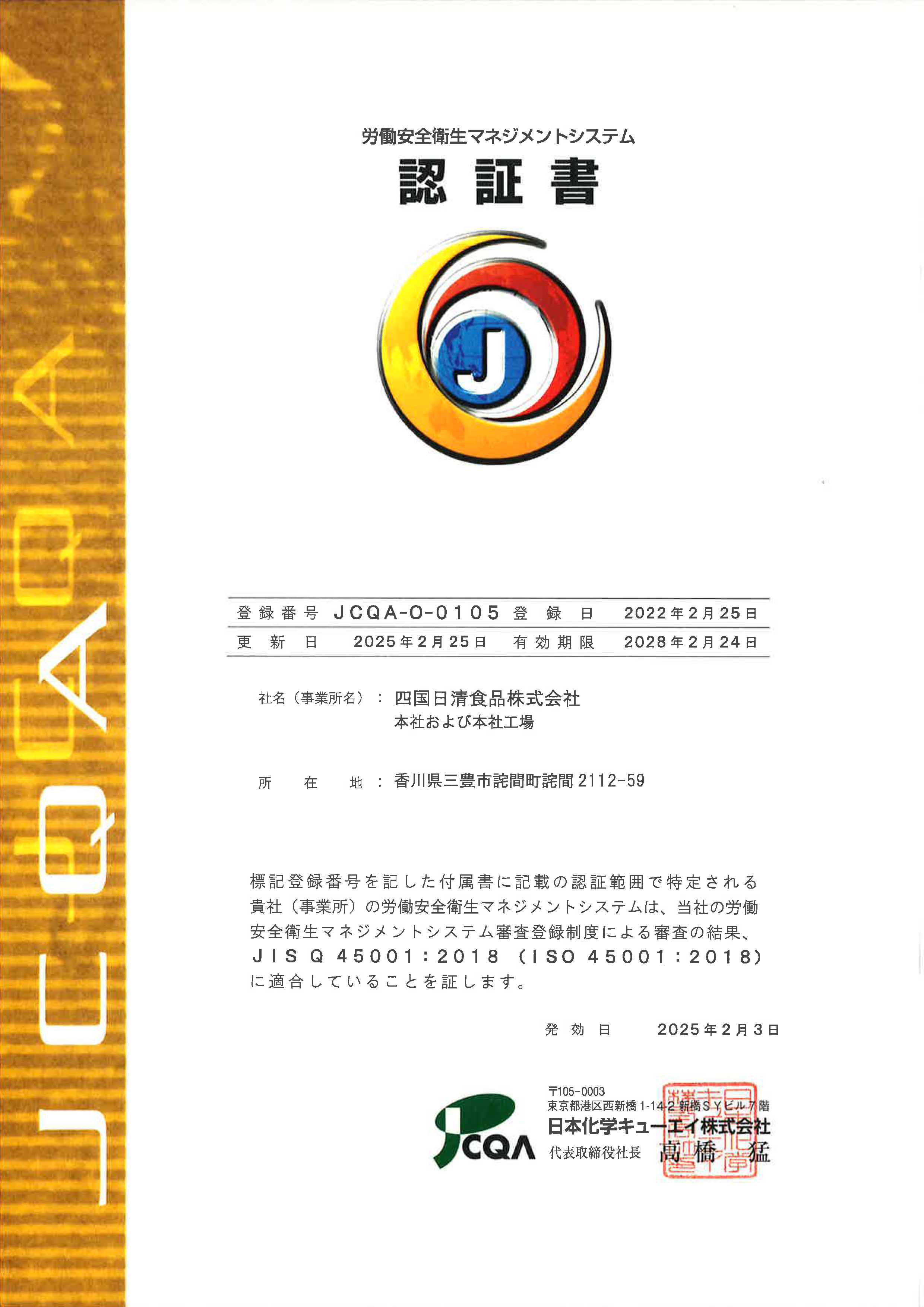 2025年9月22日 四国日清食品(株) 代表取締役社長 田所一弘